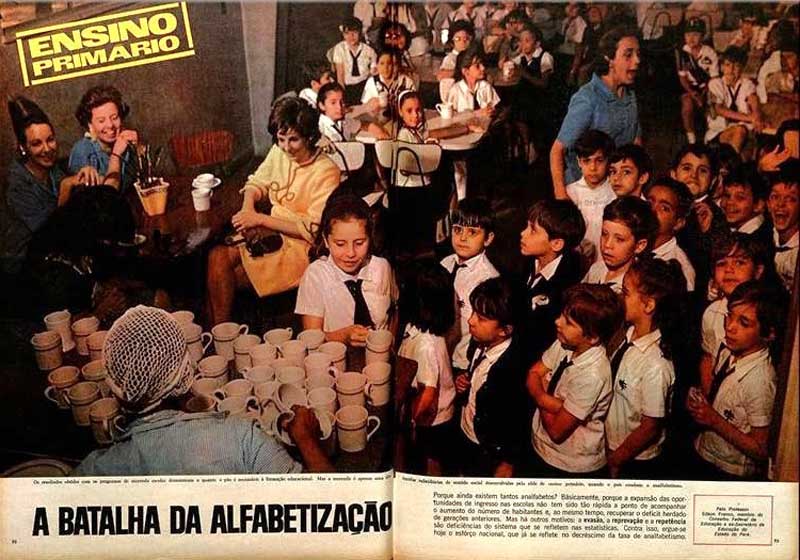 Substanciais recursos e, sobretudo, a articulação expressiva do Governo Federal com os Governos Estaduais têm sido fatores determinantes de êxito. Em segundo lugar, o lançamento da Operação-Escola – um novo esforço no sentido de aumentar, de modo gradativo, nas capitais dos Estados, a oferta de vagas nas escolas primárias e promover a melhoria dos sistemas de escolarização – representa medida acertada para corrigir deficiências, justamente nas cidades que polarizam o desenvolvimento das regiões brasileiras. O problema do analfabetismo, no entanto, não tem apenas essas causas. Decorre, às vezes, da deficiência qualitativa do magistério e da escassez de professores. E é surpreendente o quanto a própria família colabora para que os filhos não permaneçam nas escolas, preferindo exigir deles o imediato engajamento no trabalho como fonte de renda indispensável.