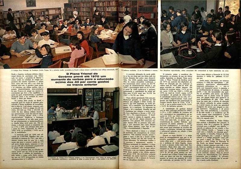 A Constituição do Brasil, de 24 de janeiro de 1967, conferiu novos encargos ao sistema educacional. Aumentou a faixa de escolarização obrigatória dos brasileiros. Não se contentou com o que o passado julgava fundamental e básico: agora exige-se dos brasileiros uma escolarização mínima de oito anos, dos sete aos catorze anos de idade. Isto requer novos esforços governamentais, sobretudo no sentido de articulação entre o ensino primário e o primeiro estágio do ensino médio. Os jovens, presentemente, são forçados a adquirir educação básica (primário e ginasial), capaz de lhes permitir o engajamento na força de trabalho de um País moderno. O Movimento Brasileiro de Alfabetização representou o primeiro instrumento criado pelo Governo, após 1964, para a missão educacional pela qual se julga responsável. Os recursos previstos para o ano de 1969 conferem a essa Fundação possibilidades de desencadear seu programa preliminar.Dois outros episódios da ação governamental devem ser destacados: primeiro, a maneira constante e sistemática com que se vem desenvolvendo o Plano Nacional de Educação, mediante convênios celebrados com Estados e Municípios. O resultado tem sido a expansão acentuada dos sistemas de ensino com a consequente absorção de novos alunos.