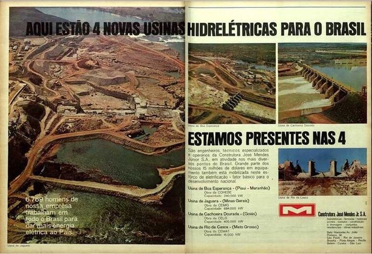 Dentro desse programa, que prevê a solução do problema para depois de 1970, destacam-se, além do grandioso empreendimento de Ilha Solteira e Jupiá, a construção de Boa Esperança, no Piauí – verdadeiro marco de redenção de uma vasta região até há pouco esquecida –, e os trabalhos de Curuá-Una, em pleno coração da Amazônia. Na construção destas imensas barragens, os engenheiros brasileiros absorveram o que havia de melhor em técnica no mundo, e desenvolveram uma técnica própria. Hoje há firmas nacionais projetistas e de construção, no campo do desenvolvimento hidrelétrico e das construções das grandes estruturas que se nivelam ao que há de melhor no campo internacional. Ao mesmo tempo, desenvolveu-se no Brasil uma florescente indústria de equipamentos elétricos que está em condições de suprir grande parte do material necessário às nossas centrais e redes elétricas. Se mais não se pôde fazer, até hoje, foi devido à carência de um esquema de financiamento adequado, comparável ao existente em Países mais desenvolvidos.