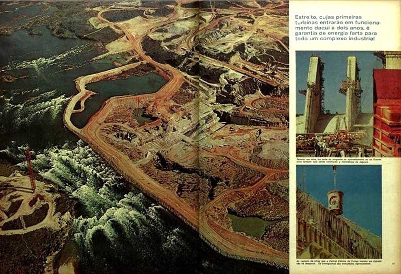 A Usina do Funil significa, também, a regularização de vasto trecho do histórico Paraíba, iniciando o processo de recuperação de extensa área entre a Guanabara e São Paulo. Estreito e Funil deverão estar concluídas em 1970. O trabalho hoje desenvolvido na construção da Hidrelétrica do Funil assegura a sua próxima inauguração. Mais energia para a Região Centro-Sul até 1970. Estreito, cujas primeiras turbinas entrarão em funcionamento daqui a dois anos, é garantia de energia farta para todo um complexo industrial O velho Gonçalves de Sousa, um sertanejo nordestino, não dormia há quase dois meses.