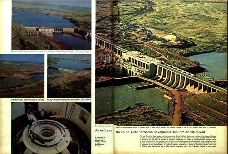 Em Bariri foi construída, pela primeira vez na América Latina, uma eclusa para a navegação fluvial. Seu primeiro gerador funcionará este ano. Outra Importante usina a entrar em funcionamento parcial – primeira unidade é de 39 kW. Situa-se entre Bariri e Promissão. As eclusas do velho Tietê tornarão navegáveis 400 km de via fluvial. A instalação da primeira turbina geradora em Ibitinga permitirá o rápido aproveitamento da usina. No Rio Tietê, há duas usinas em funcionamento, Barra Bonita e Bariri, uma em fase de montagem, Ibitinga, e outra em construção, Promissão. A potência prevista, para a fase final, é de mais de 500.000 kW. Mas a utilização do Rio não se limitará à produção energética. O plano de aproveitamento múltiplo inclui o desenvolvimento da piscicultura, que já conta em Barra Bonita com um importante centro, e da navegação fluvial, mediante a construção de eclusas que permitirão a elevação dos barcos nos pontos de desnível acentuado. A primeira já está funcionando. A Usina de Ibitinga funcionará a partir do segundo semestre deste ano. A última usina hidrelétrica que o Tietê poderá comportar será a de Promissão, também a maior delas.