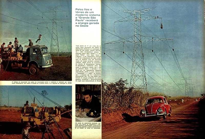 Nada menos de 47% dos recursos totais necessários aos planos de eletrificação destinam-se à construção de linhas de alta tensão, estações abaixadoras e redes distribuidoras urbanas. O principal tronco desse sistema é o chamado “linhão”, entre Jupiá, Bauru e Cabreúva. A sua característica principal é a de ter o lançamento dos cabos condutores de alumínio feito por desenrolamento sob tensão mecânica constante e uniforme obtida através de equipamentos dotados de dinamômetros especiais. O lançamento é totalmente aéreo, não tendo os condutores contato com o solo em momento algum. A operação é realizada por um equipamento altamente especializado, dentre os quais contam-se o “tensionador” e o “puller”, ou puxador, que é a máquina que faz o lançamento propriamente dito. Por essas linhas uma torrente de energia produzida nas usinas paulistas revitalizará o desenvolvimento da região mais industrializada do Brasil. O método de lançamento dos cabos de transmissão é realizado por equipamento ultramoderno, que custou 8 milhões de cruzeiros novos e é o segundo em operação no mundo. Um grupo de engenheiros nacionais, reunindo uma equipe de engenheiros e operários altamente especializados, consorciou-se para tornar possível o vultoso empreendimento de instalar as linhas de transmissão.