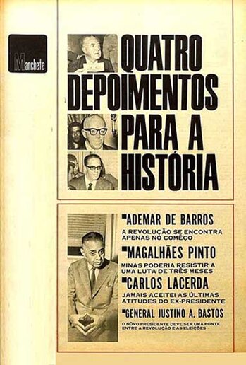 Carlos Lacerda: O movimento que derrubou o Sr. João Goulart foi uma Revolução e não um simples Golpe de Estado, que se consuma com o afastamento do governante e seus auxiliares mais chegados. Por isso, deve ser encarado como uma Revolução, o que reclama completa mudança de processos e métodos de ação pública. Não foi um movimento fascista nem da direita, como apregoam os inimigos da democracia, e sim um movimento democrático e anticomunista, porque esta era é a vontade da Nação. Atrás desta Revolução deve haver, para justificá-la e completá-la, uma coisa que se chama a reforma do Brasil.