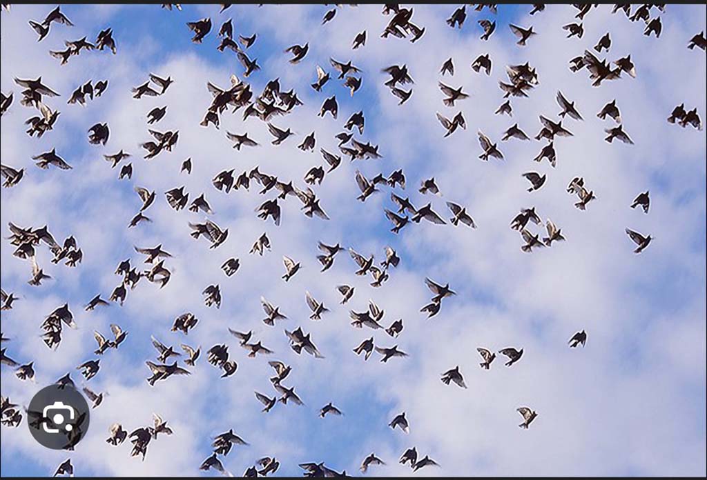 tarde vai caindo, fios elétricos e árvores ficam cheios desses pássaros negros,