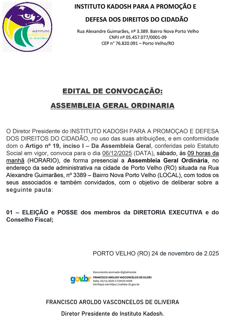 Edital de Convocação - Assembleia Geral de Fundação do Instituto Arandú