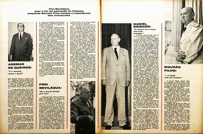 A meu ver, o aspecto mais positivo da Revolução foi ter evitado a entrega da Nação ao domínio dos extremistas, que vinham intensamente agindo com esse objetivo. No início, com a omissão e, na parte final, com a cooperação do governo deposto. Quanto à pergunta sobre “porque a revolução se tornou impopular?”, não vemos razão para a impopularidade da Revolução, posto que a popularidade não tenha constituído o objetivo do Governo. A meta deste é a recuperação do País, prejudicado pela demagogia e pela irresponsabilidade. Para a consecução desse programa se viu na contingência de adotar medidas impondo sacrifícios e restrições Dia virá – se é que existe razão na pergunta em que a opinião pública, estamos certos, iluminada pelo patriotismo e pelos resultados, fará um julgamento justo da obra Revolucionária e do Presidente Castello Branco.