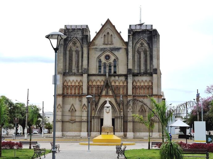 Rio Branco em frente à Catedral de São Luís, em Cáceres.
