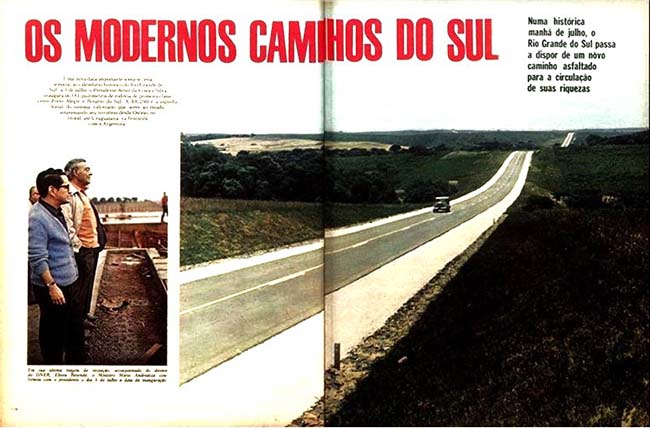 Uma nova data importante soma-se, esta semana, ao calendário histórico do Rio Grande do Sul: a 3 de julho, o Presidente Arthur da Costa e Silva inaugura os 381 quilômetros de rodovia de primeira classe entre Porto Alegre e Rosário do Sul. A BR-290 é a espinha dorsal do sistema rodoviário que serve ao Estado, atravessando seu território desde Osório, no litoral, até Uruguaiana na fronteira com a Argentina.