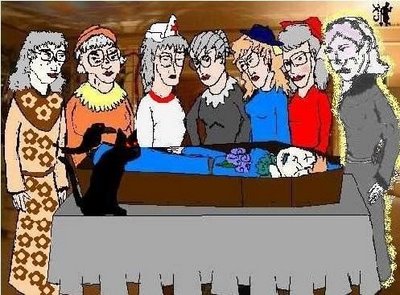 Guiné, confortadas pelas amigas beatas, recebia os pêsames pelo neto que batera