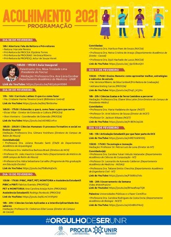 A UNIR, por meio da PROCEA, preparou uma programação imperdível para a Semana de Acolhimento ao Discente 2021.