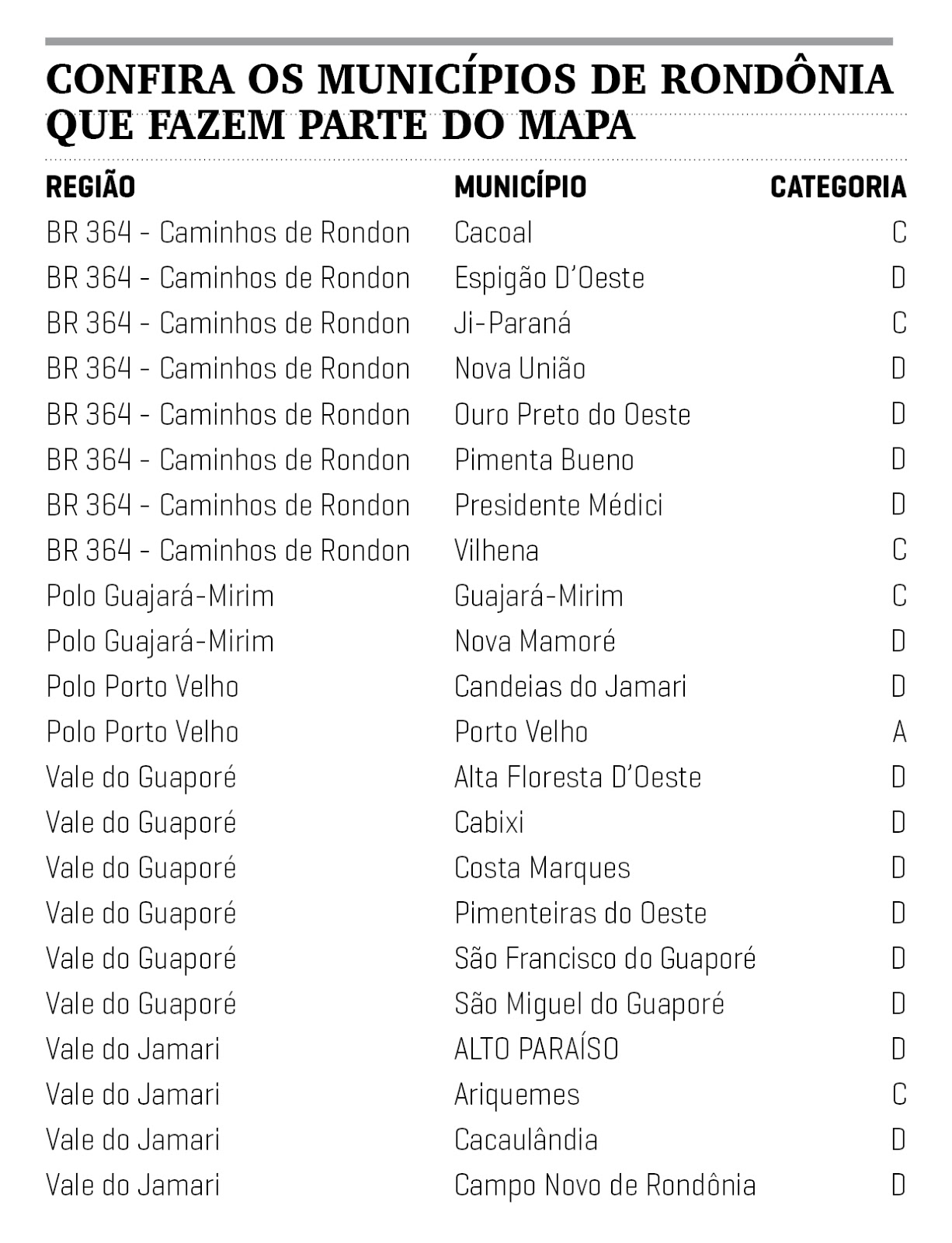 Em comparação ao ano passado, o estado inseriu 8 municípios no mapa, passando de 14 para 22 cidades com vocação turística. Os destinos estão distribuídos em 5 regiões, uma a mais que em 2016 com a inclusão da região do Vale do Jamari, que engloba quatro municípios. O levantamento completo do Mapa do Turismo Brasileiro foi divulgado na última quinta-feira (14) pelo Ministério do Turismo. Em todo o país, foram listados 3.285 municípios em 328 regiões turísticas, um crescimento exponencial em relação ao Mapa de 2016, quando foram registradas 2.175 cidades em 291 regiões.