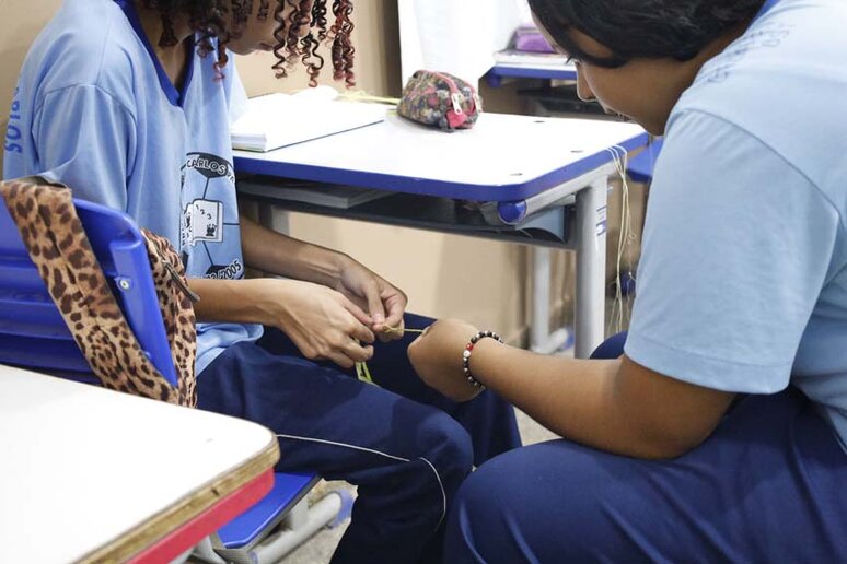 sala de aula transformada em ateliê artesanal na Escola Estadual Professor Luís