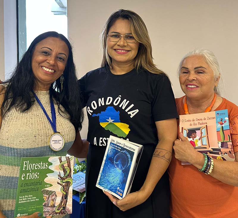 A presidente da AJEB/RO, Izabel Cristina, que articulou a presença da autora no encontro, destacou a importância de ampliar a visibilidade da escrita feminina e de valorizar produções que incorporam práticas inclusivas.
