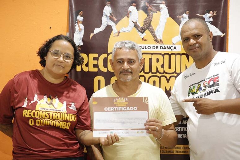 aprenderam as danças afro-brasileiras e receberam certificados de participação.