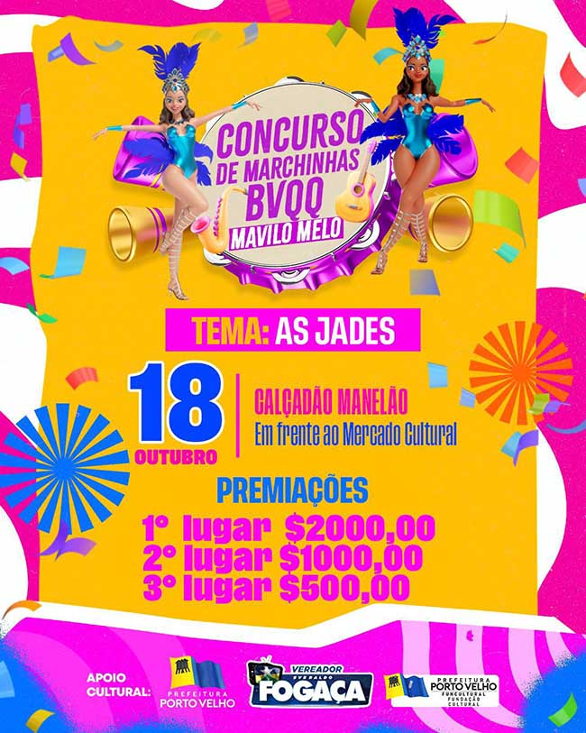 acontece o 1°Concurso de Marchinhas Mávilo Melo, com o tema: “As Jades”. “A