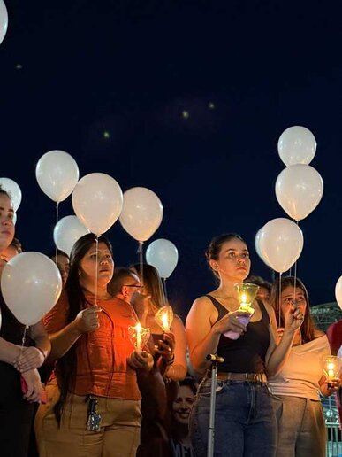 uma caminhada silenciosa pelo campus, carregando velas e cartazes em homenagem