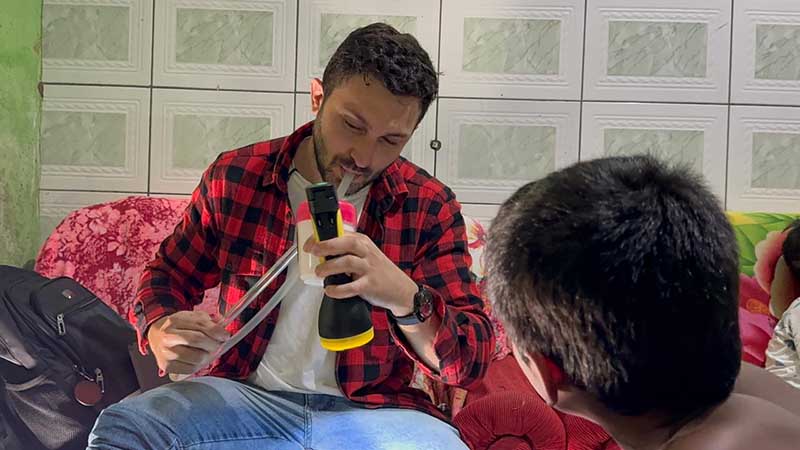 Romário Portes: “Com autorização do morador, forramos um cômodo com lençóis brancos, aplicamos o produto e coletamos os insetos para verificar se o Anopheles pernoita dentro da casa.”