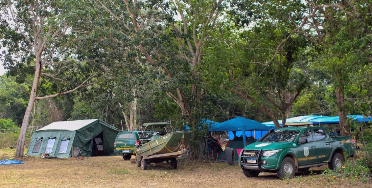 Acampamento do Ibama montado às margens do Rio Guaporé (Foto: Luís Castilhos I Secom ALE/RO)