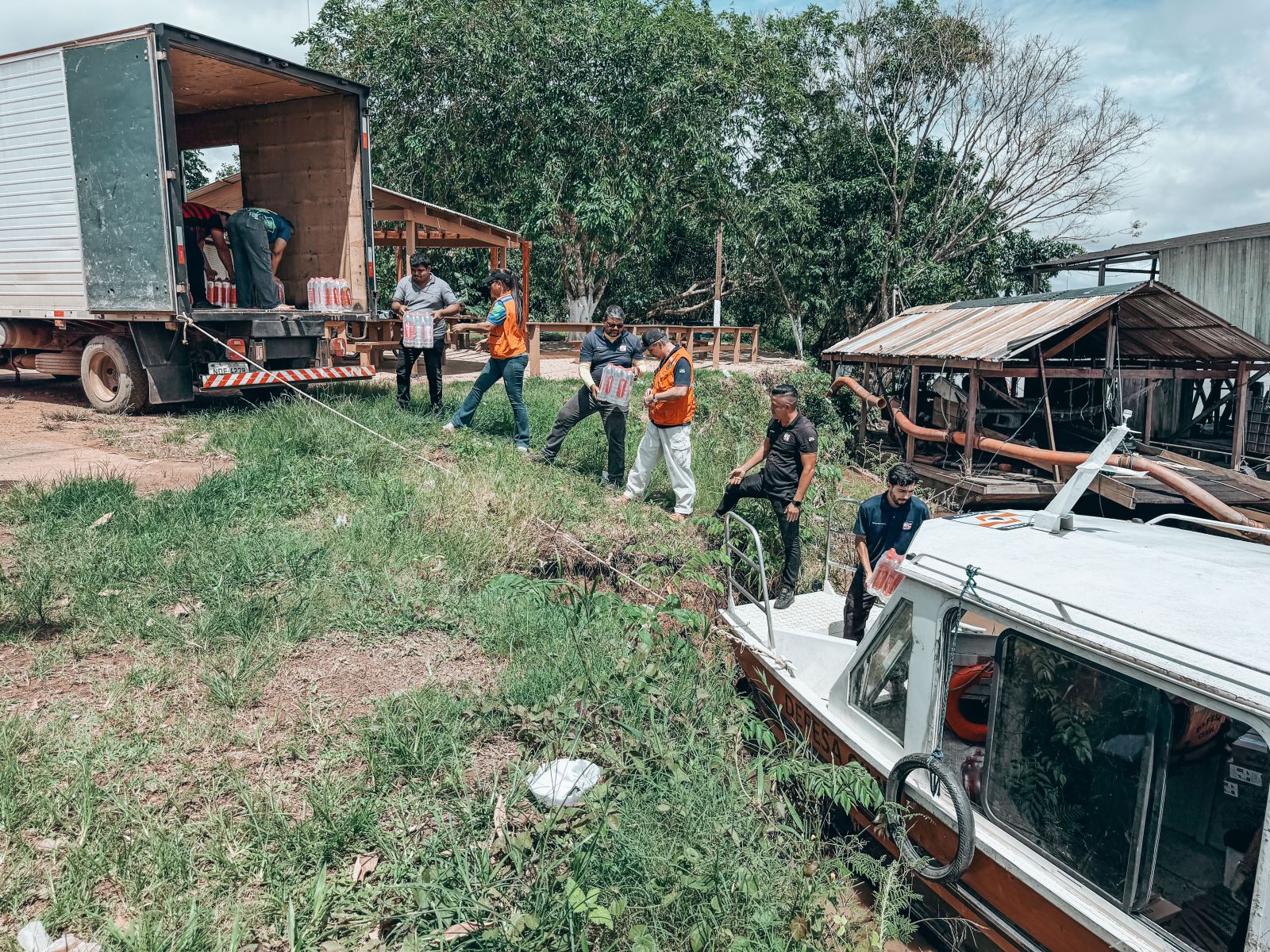 Ao todo, foram transportados mais de 1.200 litros de água potável e 110 caixas de hipoclorito, insumos fundamentais para garantir condições mínimas de saúde e qualidade de vida às famílias que vivem em áreas afetadas, tanto no período de cheia quanto na época da seca do Rio Madeira.