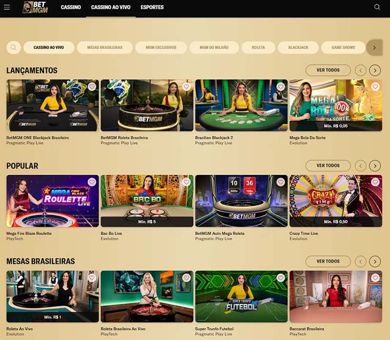 R: A BetMGM oferece uma seleção premium dos jogos ao vivo mais populares,