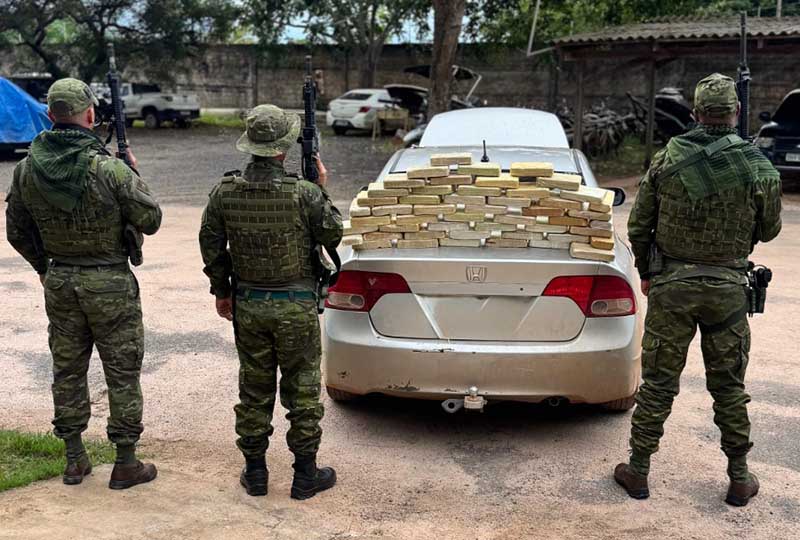 A ocorrência foi registrada nas imediações da avenida Boucinha de Menezes com a avenida Marechal Deodoro, área central do município. A guarnição do Batalhão de Polícia de Fronteira e Divisas (BPFRON), em conjunto com o Pelotão de Operações com Cães/BPCHOQUE, 6º BPM e GEI/SESDEC, realizavam patrulhamento ostensivo com foco no combate a crimes transfronteiriços quando visualizou um veículo Honda Civic, cor prata, em atitude suspeita.