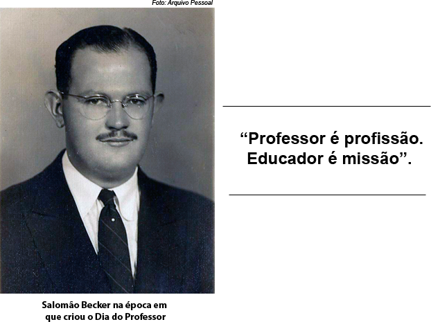 A comemoração, no entanto, só se consolidou em 1947, com a criação da Comissão Pró-oficialização do Dia do Professor, em São Paulo. O educador Salomão Becker foi um dos principais articuladores do movimento, lembrado por frases célebres como: “Professor é profissão, educador é missão”.