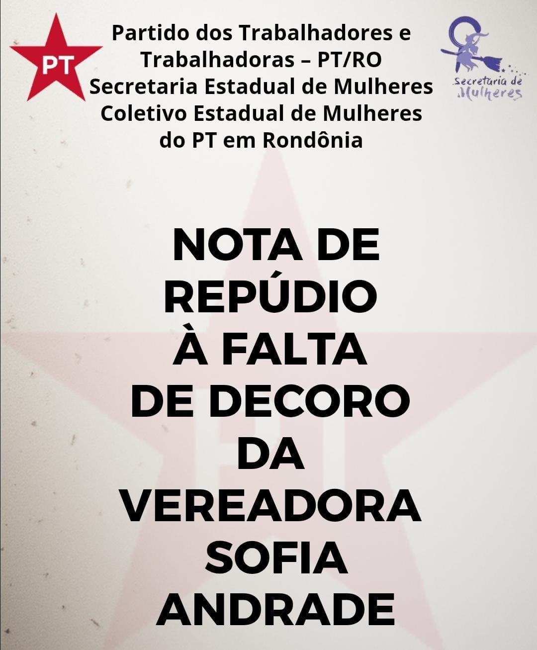 Nota de Repudio à falta de decoro da vereadora Sofia Andrade