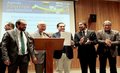 18h16 - O coordenador Técnico, Volkmar Schuler, primeiro à esquerda, acompanhado por comitiva de representantes da universidade e Câmara de Ulm e do gerente...