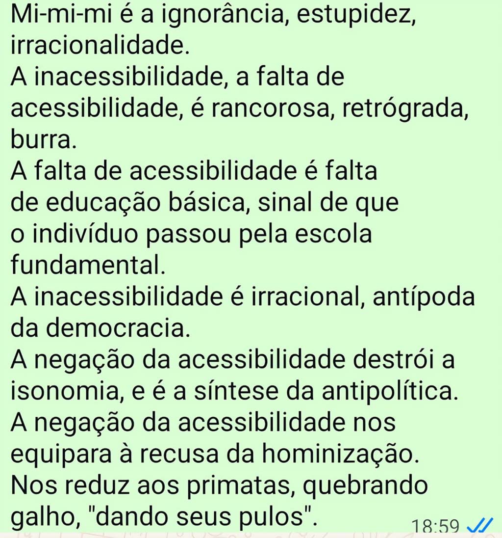 Pelo senso comum, pela definição provinda das coisas muito óbvias, a acessibilidade é uma das regras básicas da democracia. Sem acessibi