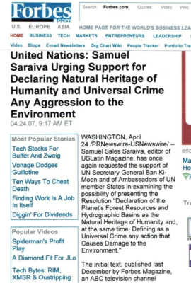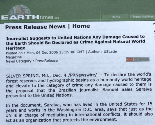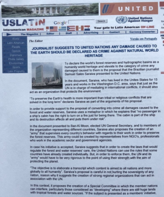 Projeto submetido a ONU em defesa do meio ambiente.