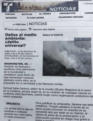 Meio ambiente, repercussão na imprensa americana.