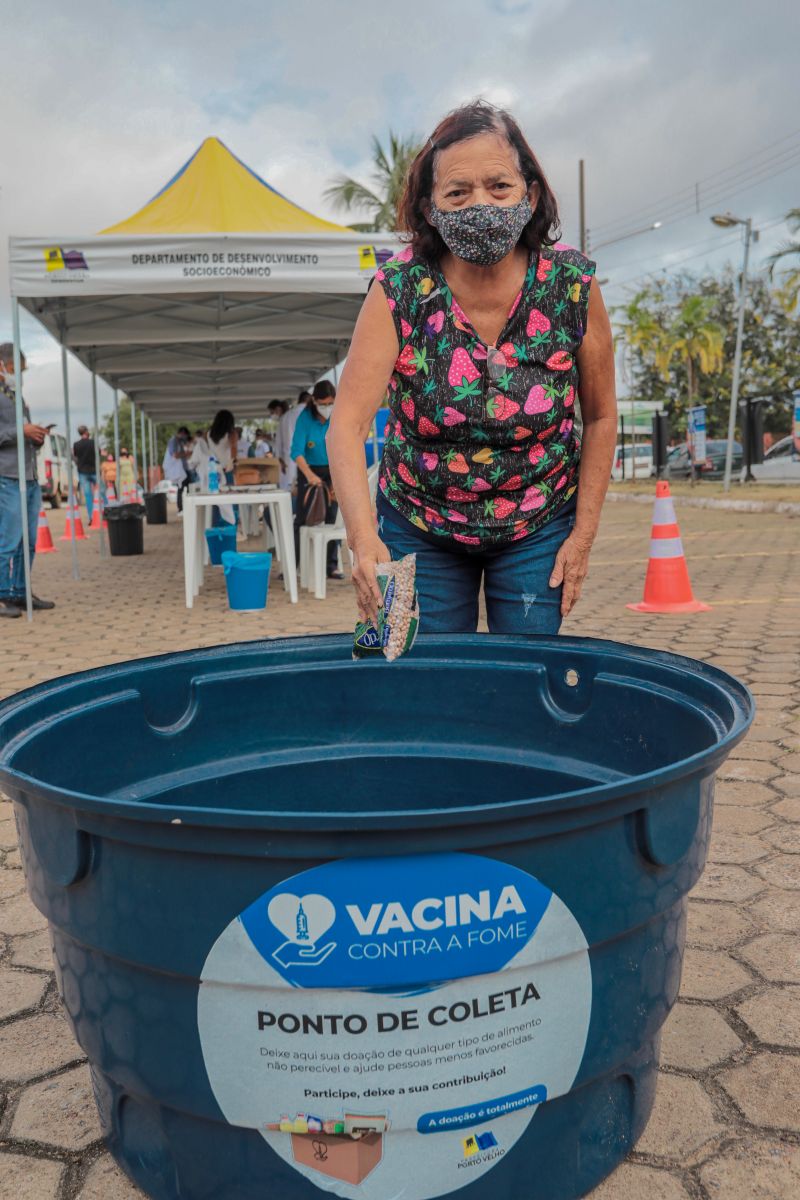 A campanha de combate à fome da Prefeitura de Porto Velho continua. Basta levar um quilo de alimento não perecível em qualquer ponto de vacinação. Os alimentos arrecadados serão destinados às famílias carentes com cadastro na Semasf.