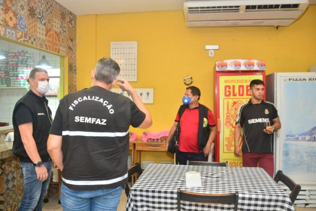 Além dos policiais, por determinação do prefeito Hildon Chaves, servidores do Departamento de Fiscalização da Secretária Municipal da Fazenda (Semfaz) e do Departamento de Posturas da Subsecretraria Municipal de Serviços Básicos (Semusb) realizaram a vistoria tanto naqueles estabelecimentos vedados para o funcionamento neste período, como bares, boates, entre outros, quanto naqueles onde o funcionamento é permitido, desde que não haja consumo local, ocasionando aglomeração de pessoas, a exemplo de padarias e restaurantes, estes permitidos para retirada de pedidos no balcão ou entregas delivery.