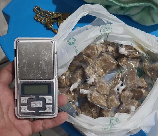 Na residência de V.M, os policiais localizaram 55 porções de substância amarelada aparentando ser cocaína tipo OXI, acondicionadas em sacos plásticos de aproximadamente 25 gramas cada, além de 45 invólucros de substância esbranquiçada similar à cocaína.