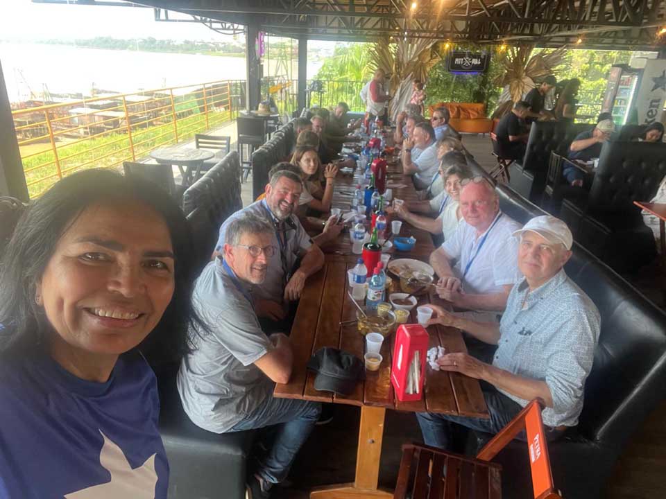 O encerramento do tour foi marcado por um dos momentos mais esperados: a experiência gastronômica amazônica. No retorno ao Restaurante Pittbull, os empresários foram surpreendidos com um banquete de sabores regionais, cuidadosamente preparados para destacar o melhor da culinária local. No cardápio, peixes típicos da região foram as grandes estrelas — entre eles, o famoso Tambaqui sem espinhos, a caldeirada de Dourado, pratos que conquistaram o paladar dos visitantes e certamente ficarão gravados em suas memórias.