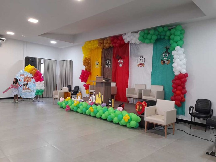 EBF, tivemos brincadeiras, dinâmicas, pula-pula e lanches. As crianças puderam