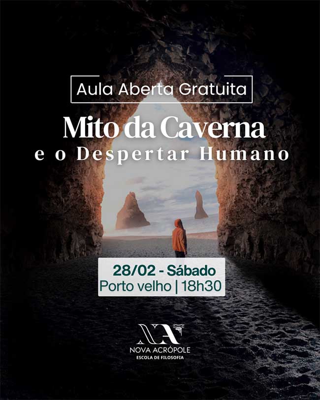 neste sábado (28), às 18h30, a aula aberta gratuita “Mito da Caverna e o