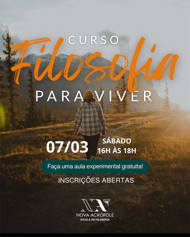A aula aberta integra a programação de início de semestre e marca também a abertura das inscrições para a nova turma do curso Filosofia para Viver, que terá início no dia 7 de março, com encontros semanais aos sábados, das 16h às 18h.