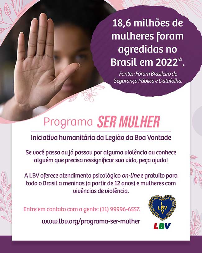 ligação. Saiba mais sobre o programa Ser Mulher acessando www.lbv.org/programa-ser-mulher.