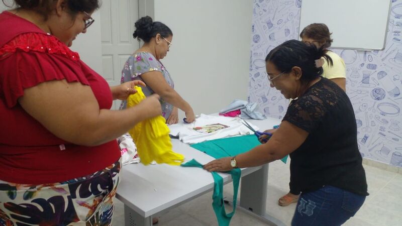 famílias de baixa renda inscritas no curso de corte e costura, realizado pelo