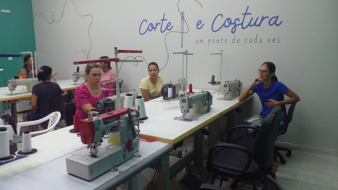 máquinas de costura e Secretária de Assistência Social e Família (Semasf).
