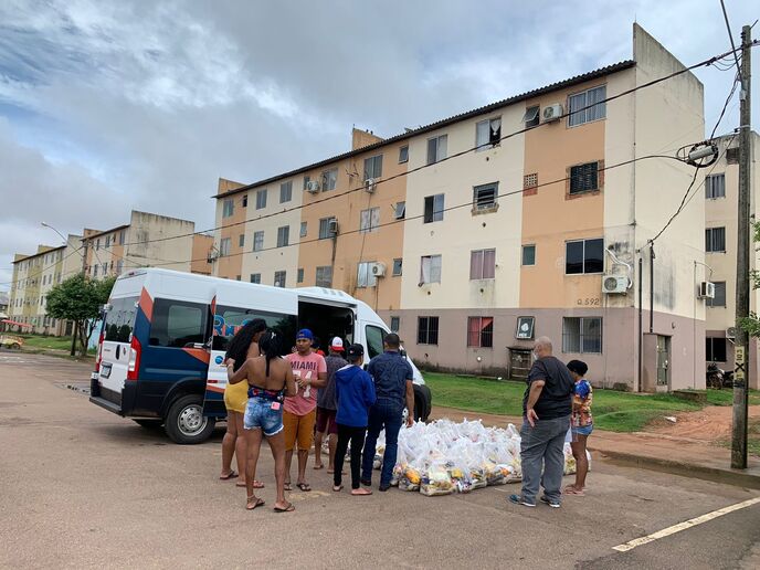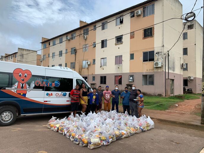 Uma ampla mobilização social de professores e alunos do curso de direito da Universidade Federal de Rondônia (UNIR) está levando alimentos a famílias carentes na cidade de Porto Velho. Nessa terça-feira, 16, o professor Delson Fernando Barcellos Xavier, docente do Departamento de Ciências Jurídicas e idealizador do projeto Natal sem Fome, coordenou a entrega de cem cestas básicas a famílias de moradores do conjunto habitacional Orgulho do Madeira.