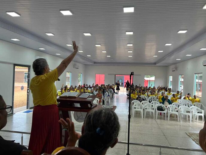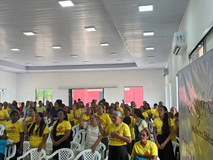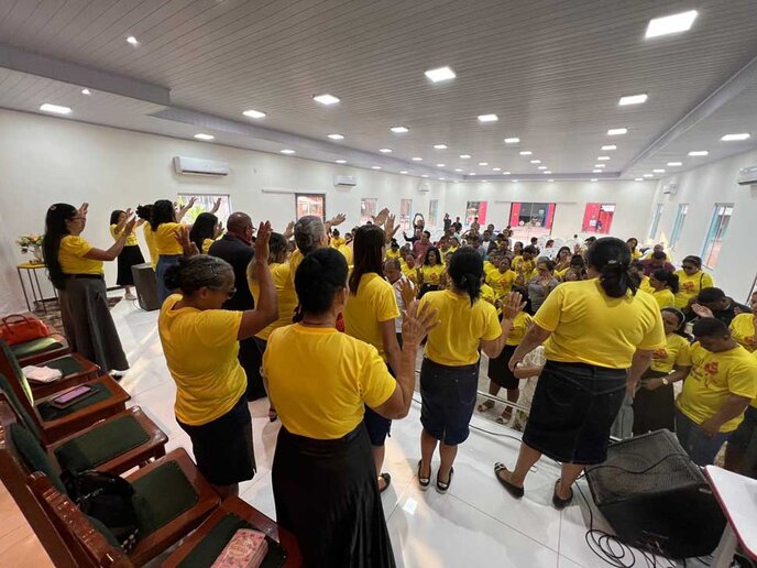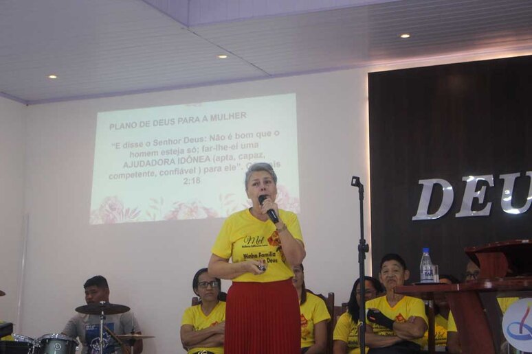Com o templo da igreja Evangélica Assembleia de Deus lotado de mulheres,