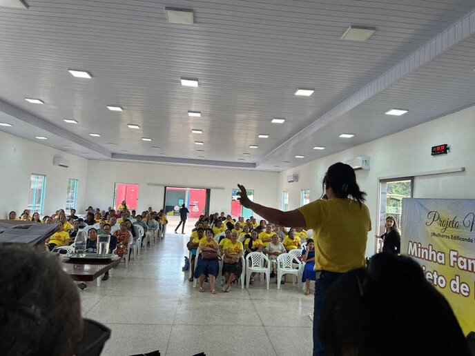 algumas acompanhadas de seus esposos, o ensino para as famílias foi